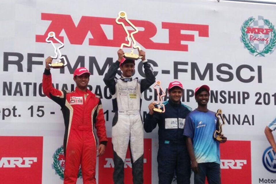 8 Podiums(4 wins, 2 second and 2 third) Round-1 to 4 JK Tyre FMSCI National Racing Championship 2017 (Rookie)